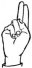 На ћирилици написано АНГЕЛИНА БЕТЕГАЛО састоји се из 16 слова [?]. Исписано ћириличном једноручном азбуком за глувонеме: